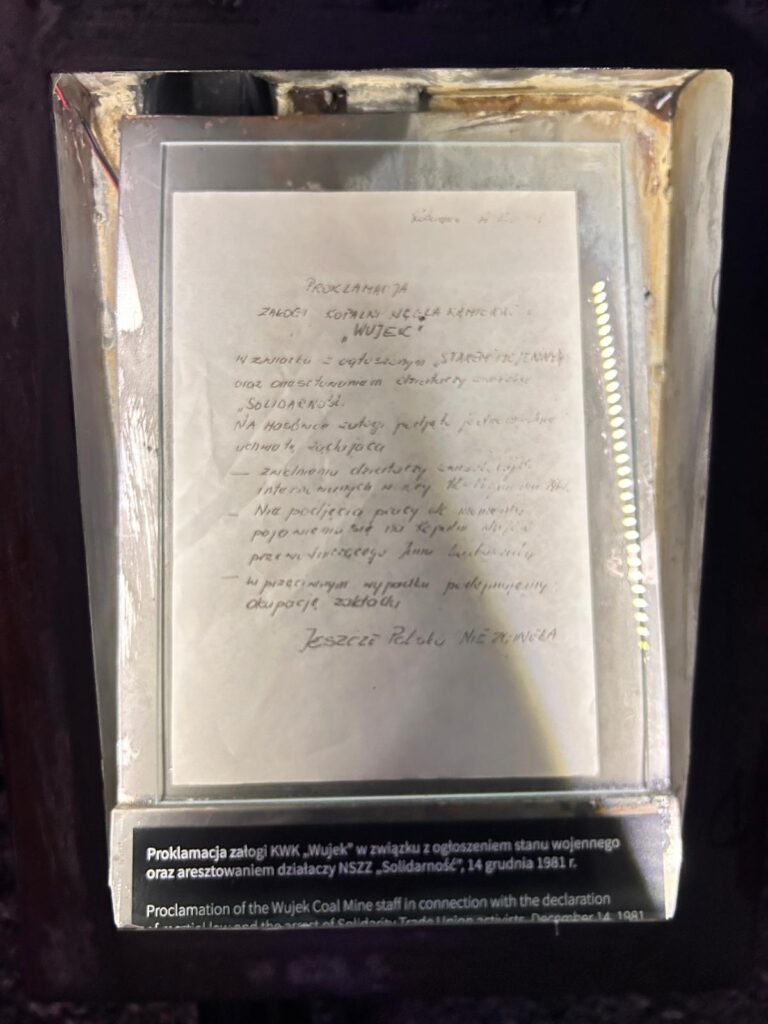 Z okazji 44 rocznicy ogłoszenia stanu wojennego młodzież naszego liceum zwiedzała Śląskie Centrum Wolności i Solidarności im. Dziewięciu Górników z “Wujka” w Katowicach. Bardzo realistyczne ekspozycje i oprowadzanie przez bezpośredniego świadka wydarzeń grudnia 1981, pozwoliło nam odczuć dramat tamtych chwil. Przejmująca jest świadomość, że wśród ofiar górników byli pracownicy w wieku 19 i 22 lat. Wprowadzeniem do zwiedzania było omówienie sytuacji politycznej Polski w latach 1945-1981. Uczniowie mieli okazję przeżyć żywą lekcję historii. Mogli doświadczyć realiów, w których wzrastali ich dziadkowie i rodzice. To bardzo cenne doświadczenie, budujące tożsamość i świadomość polskiej młodzieży.